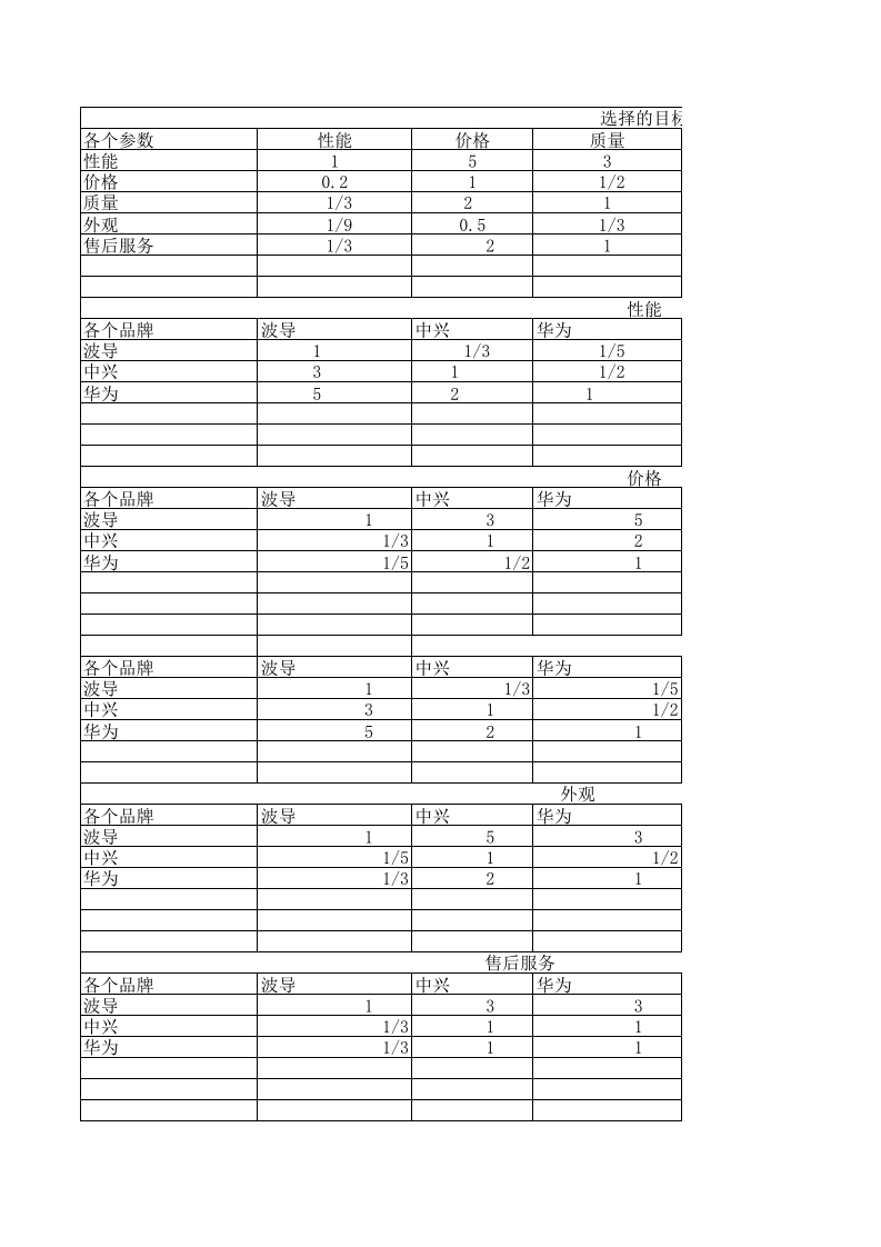 层次分析法Excel演算实验