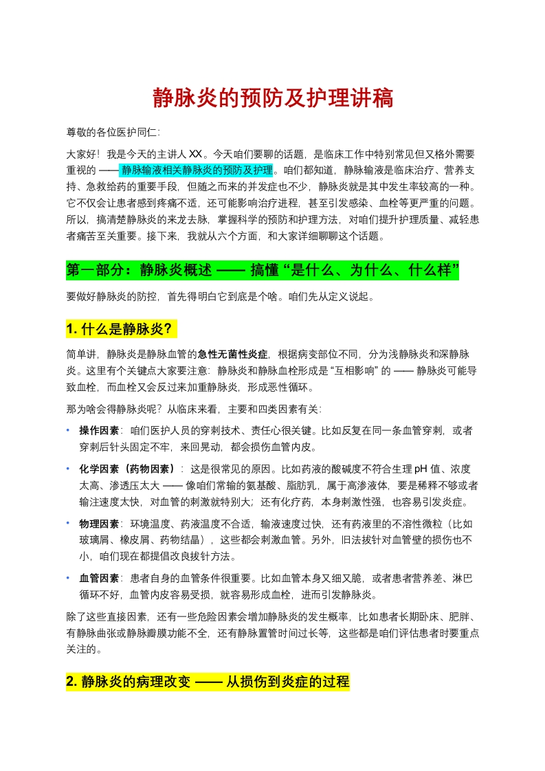 静脉炎的预防及护理讲稿