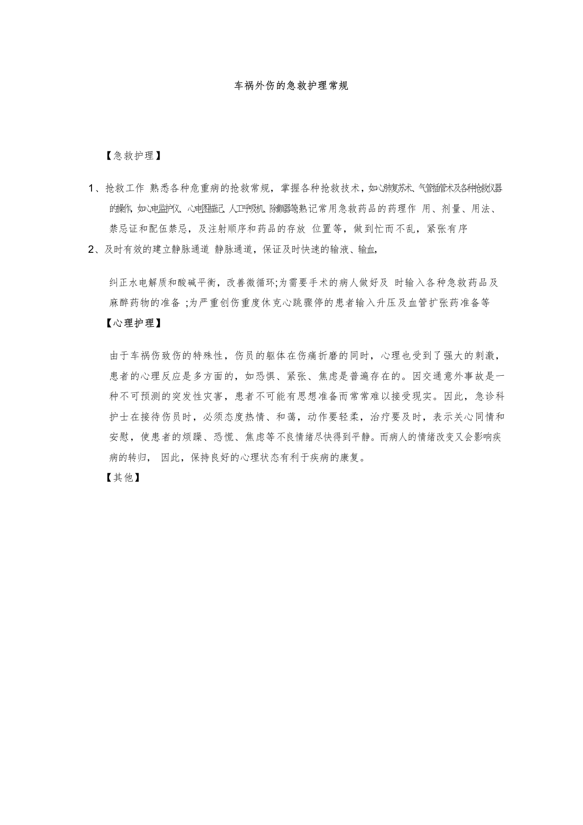 车祸外伤的急救护理常规