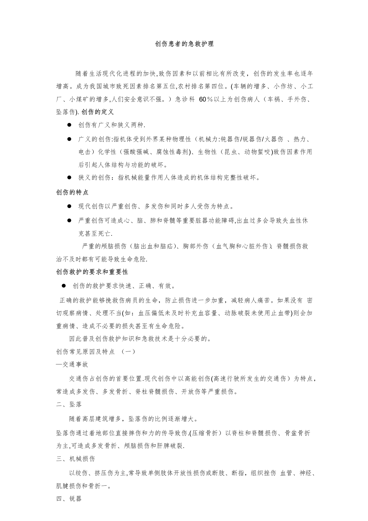 首页临床实务创伤中心创伤患者的急救护理