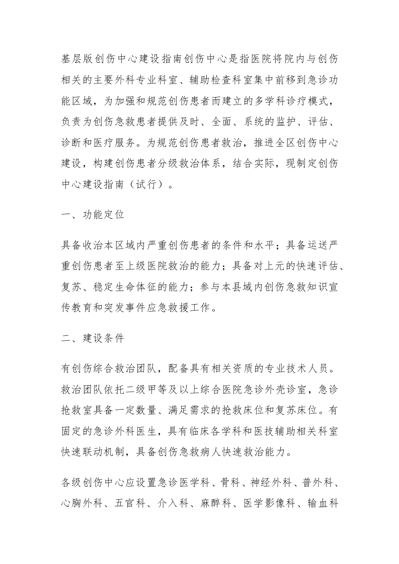 首页临床实务创伤中心基层版创伤中心建设指南