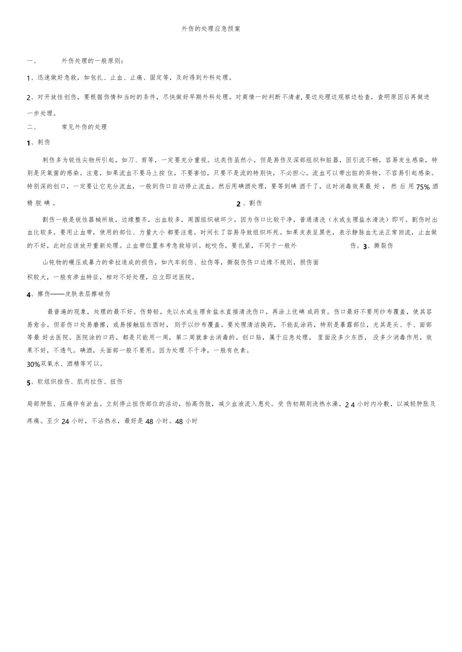 外伤的处理应急预案13种