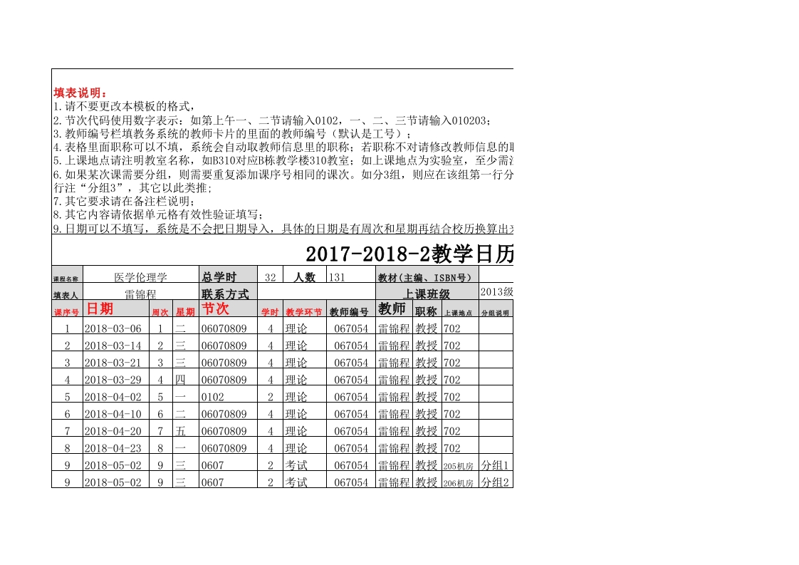 医学伦理学-2013临床医学(中国政府奖学金),2013临床医学一(2)班教学日历